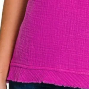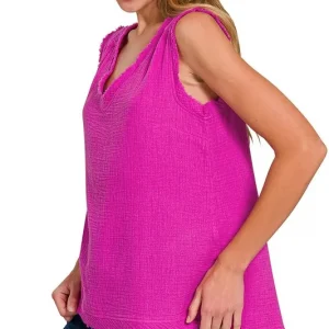 Double Gauze Raw Edge V-Neck Tank – Neon Hot Pink