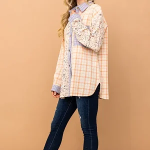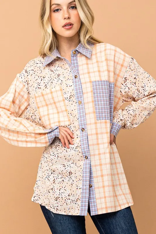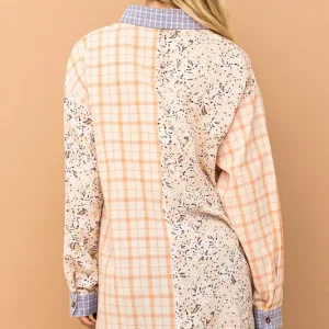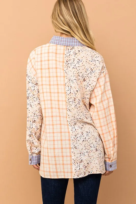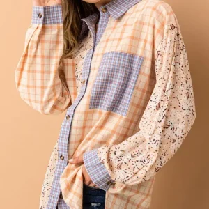Floral and Plaid Color Block Shirts with Pocket – Peach