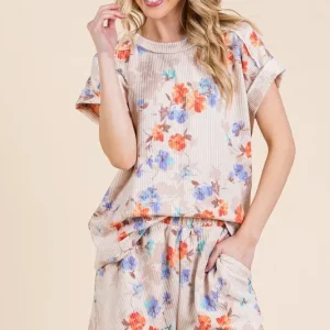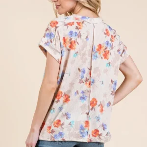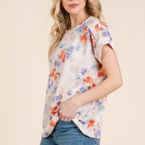 Floral Round Neck RIbbed T-Shirt – As Shown
