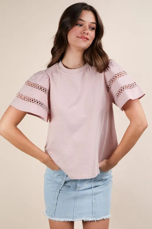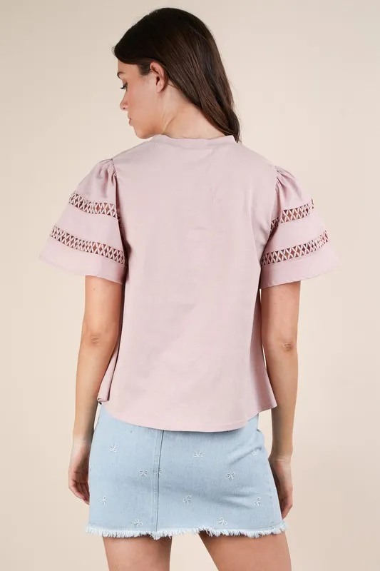 Lace Trim Sleeve Top – Blush