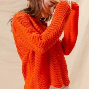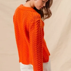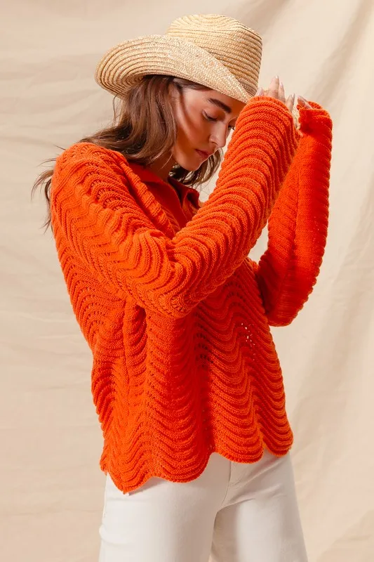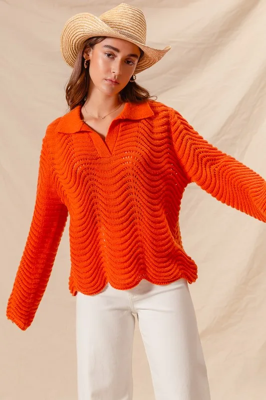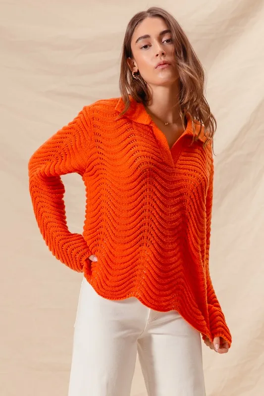 This notched collar wavy texture sweater top is a modern and stylish piece for your wardrobe. The unique wavy texture adds a touch of interest and dimension to the top. The notched collar detail elevates the design, making it a versatile option for both casual and dressier occasions.
