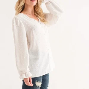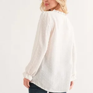The Polka Dot Ruffle Detailed Blouse Top is a charming and versatile addition to your wardrobe. Featuring a playful polka dot print and ruffle detailing, this top exudes a sweet and feminine look. The blouse design adds a touch of elegance, making it suitable for both casual and dressier occasions. Ideal for pairing with jeans or skirts, this blouse top offers a stylish and fun option for creating cute and chic outfits.