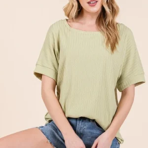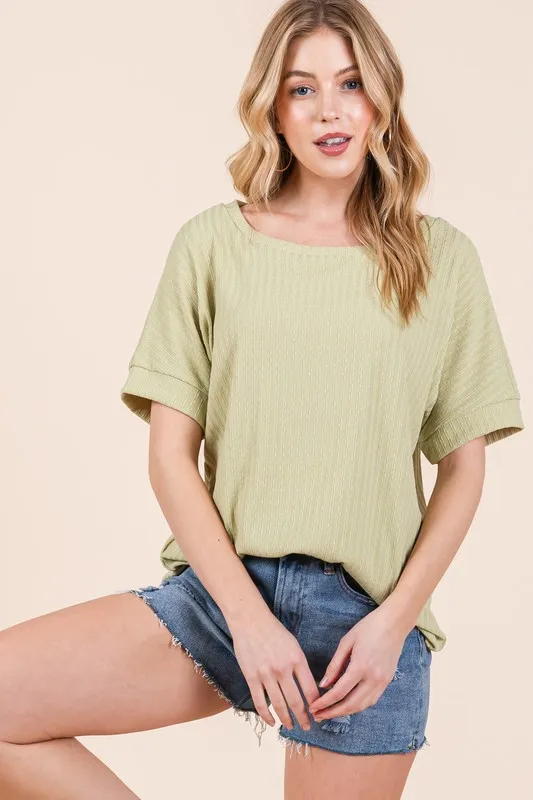 The Rib Knit Short Sleeve T-Shirt is a classic and versatile piece for your wardrobe. Made from ribbed knit fabric, this t-shirt offers a textured and stretchy material for a comfortable fit. The short sleeves add a casual and laid-back vibe, making it easy to pair with jeans, shorts, or skirts for a simple and stylish outfit. Perfect for everyday wear, this t-shirt is a wardrobe staple that can be dressed up or down for various occasions.
