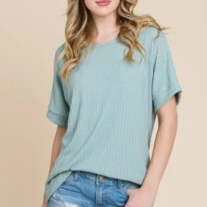 Rib Knit Short Sleeve T-Shirt – Sage