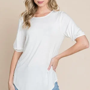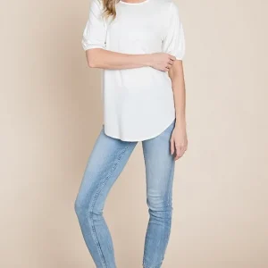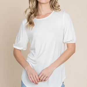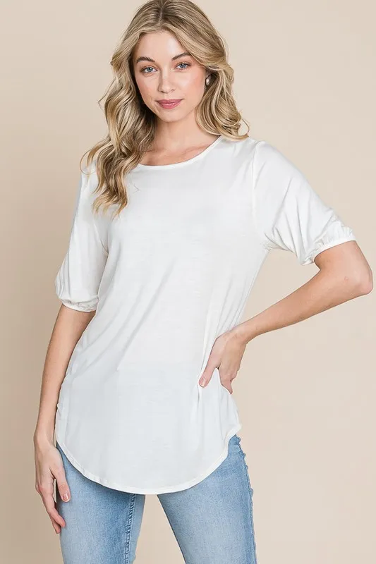 Round Neck Puff Sleeve T-Shirt – Ivory