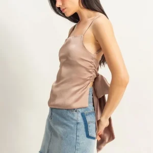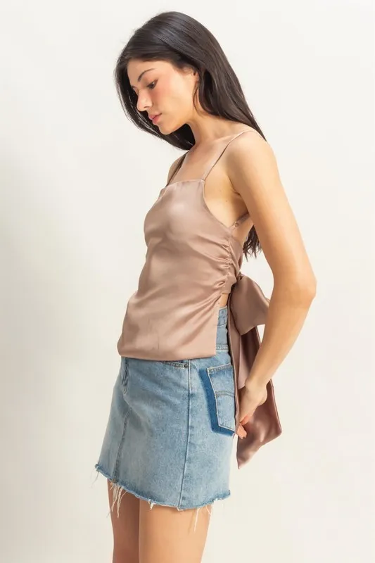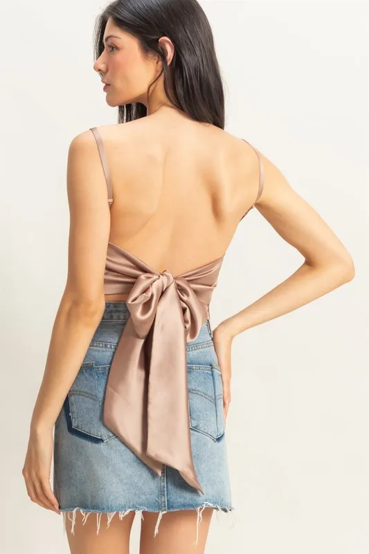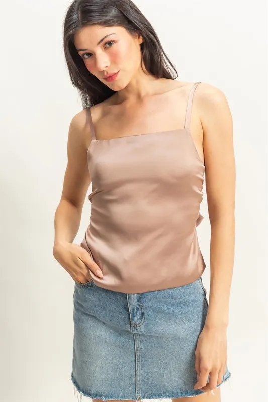 Satin Back Tie Detail Cami – Dark Taupe