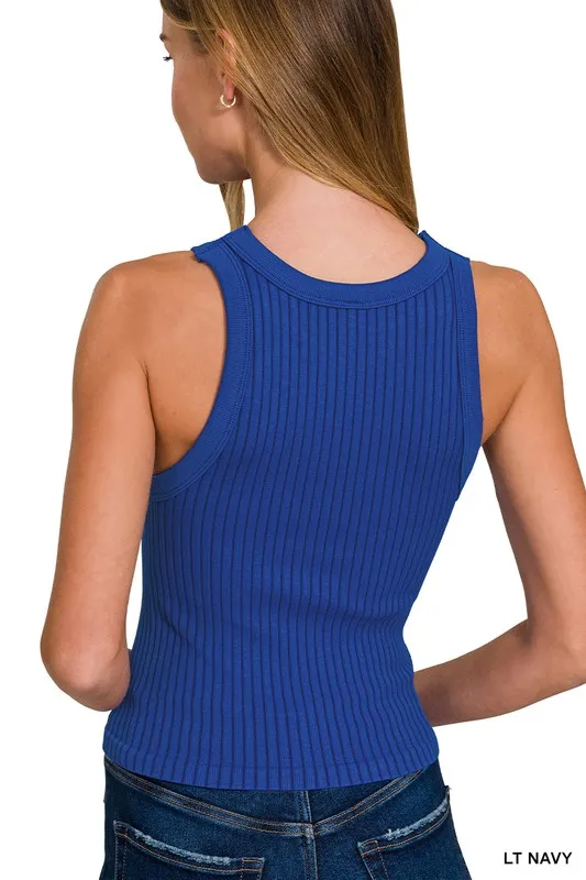The Seamless Ribbed Crop Tank is a versatile and trendy wardrobe staple that offers both comfort and style. Made from a seamless and ribbed fabric, this crop tank provides a flattering and stretchy fit that conforms to your body shape. The ribbed texture adds an interesting detail to the design, while the crop style offers a modern and youthful look. This tank top is perfect for layering or wearing on its own, and the crop length pairs well with high-waisted bottoms such as jeans, shorts, or skirts. Whether you’re heading to the gym, running errands, or going out with friends, the Seamless Ribbed Crop Tank is a versatile and chic option that can be dressed up or down for various occasions.