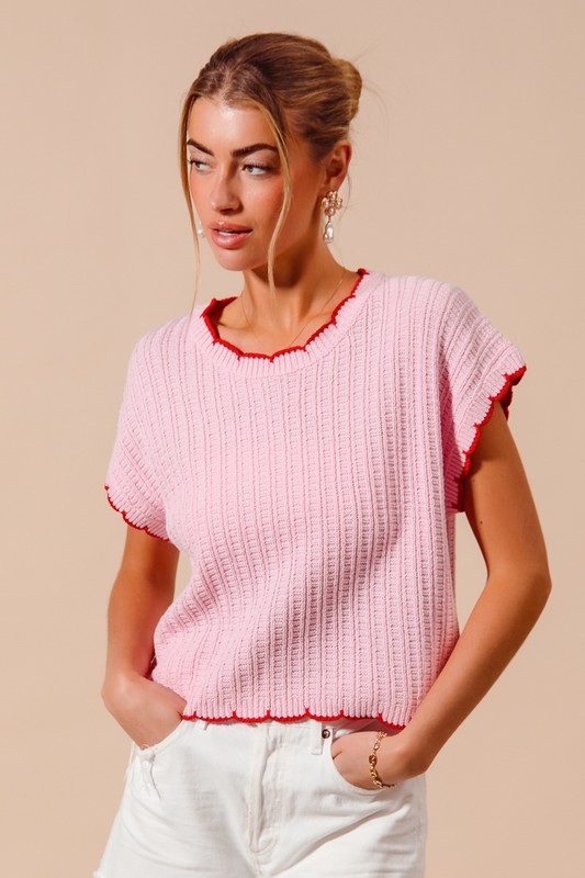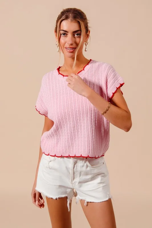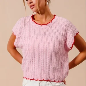 Textured Light Weight Sweater Dolman Top – Blush/Red