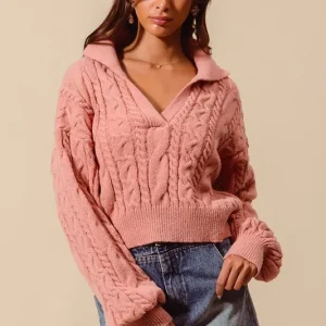 Cable Knit Deep V Neck Crop Swetaer Top – Mauve