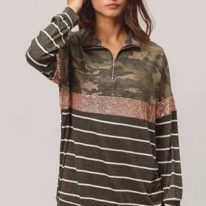 Camouflage French Terry Knit Top – Pink Sequin