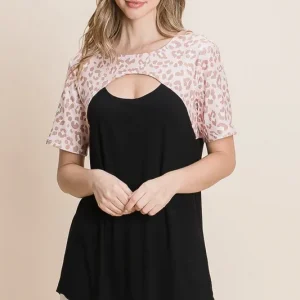 Chic Leopard Contrast Cutout Top – As Shown
