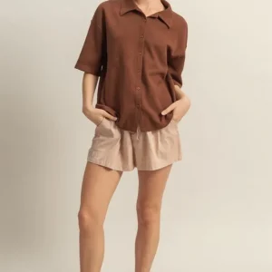 Collared Neck Button Down Waffle Shirt – Chestnut