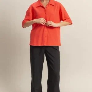 Collared Neck Button Down Waffle Shirt – Coral