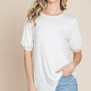 Round Neck Puff Sleeve T-Shirt – Ivory